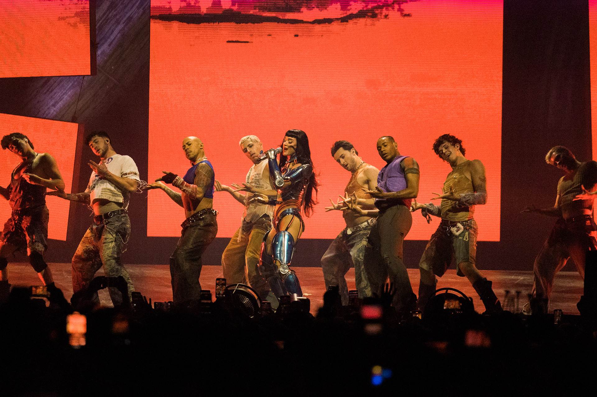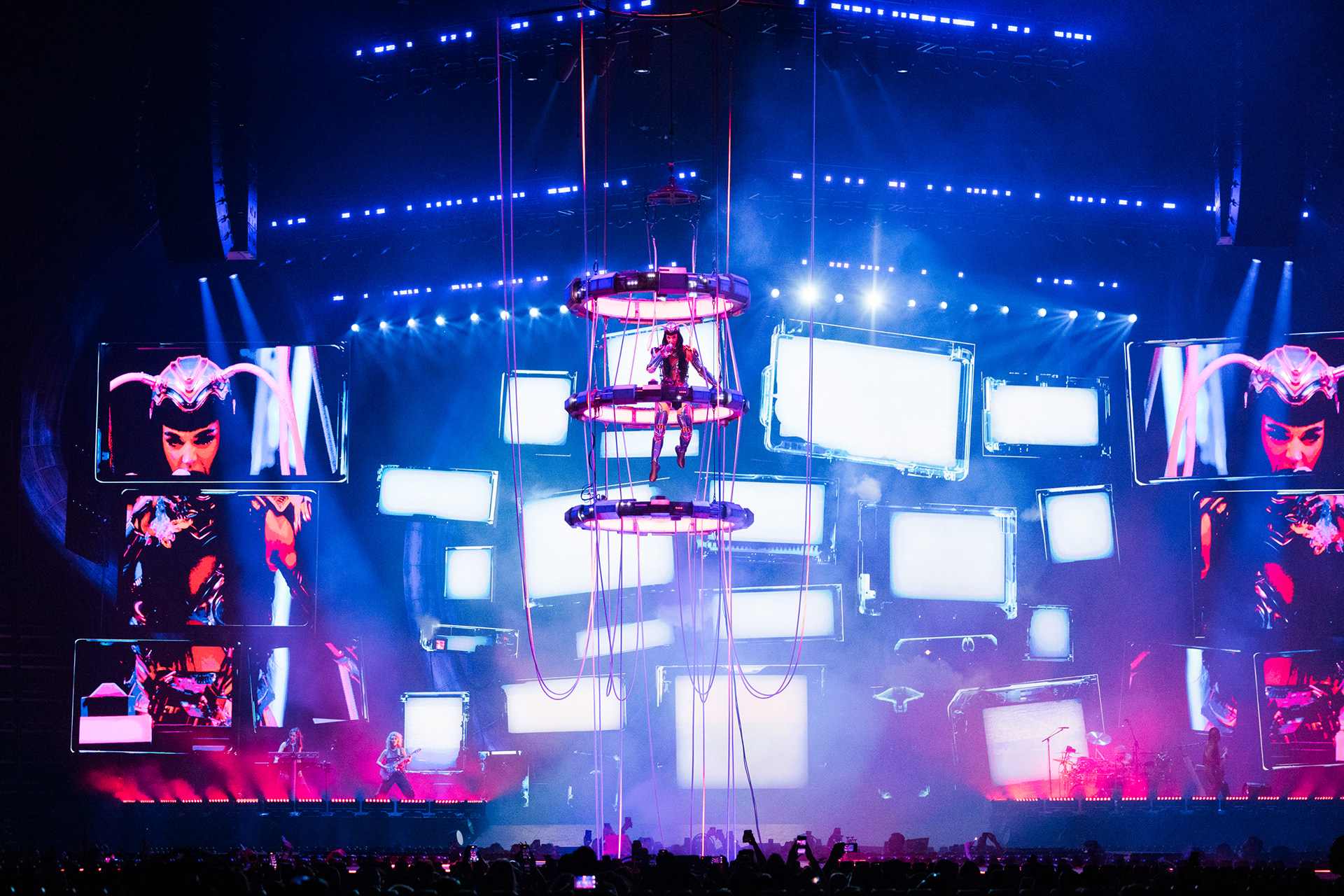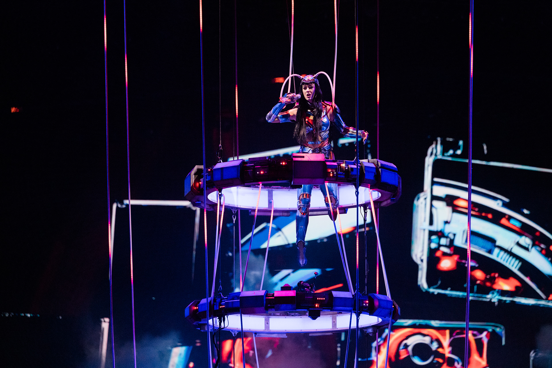 Before Perry took over, Rebecca Black opened the evening with high-energy charisma. Armed with a pair of dancers and a remix of her breakout hit “Friday,” Black energized the arena and got the crowd warmed up for what was to come .