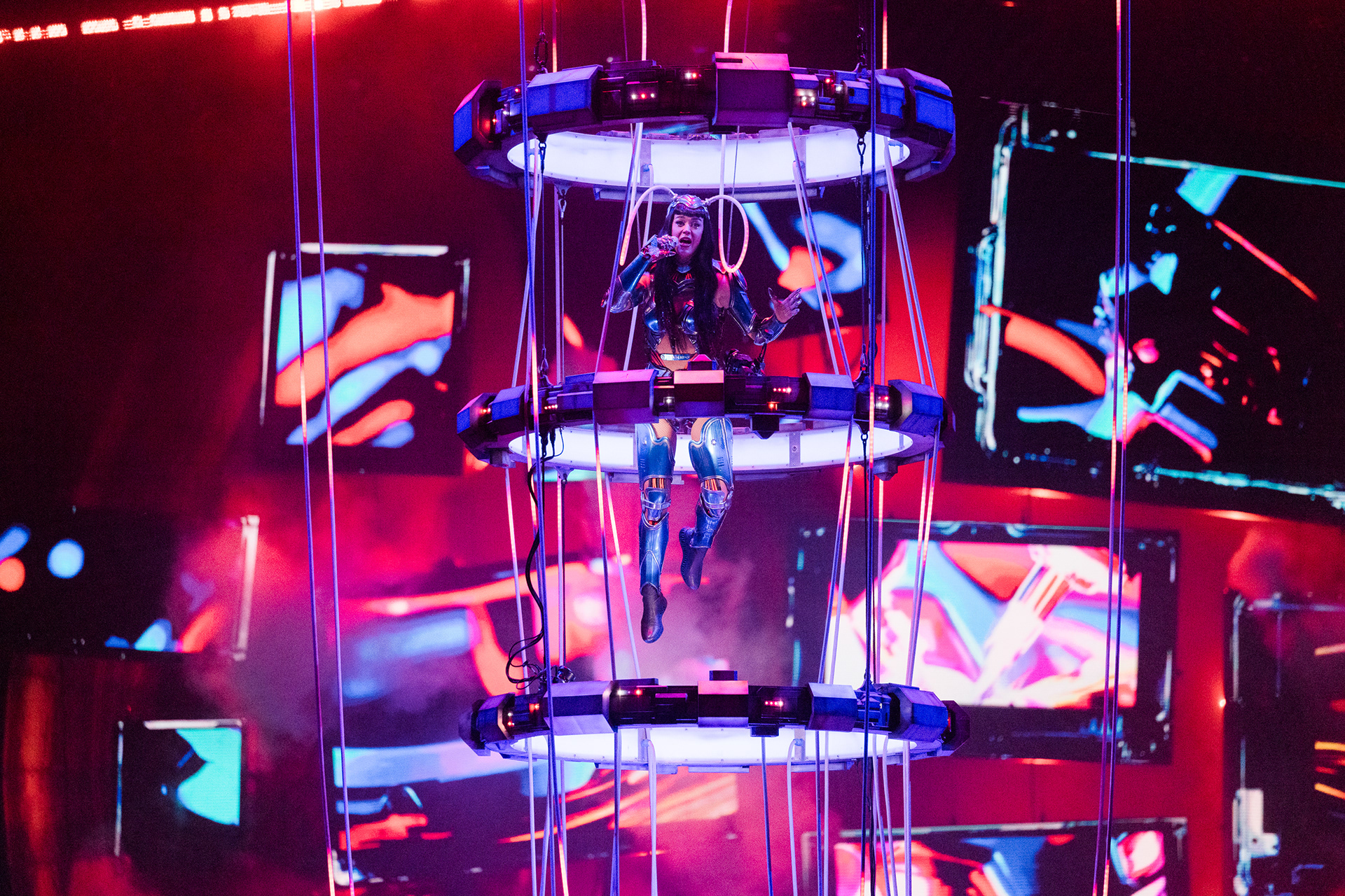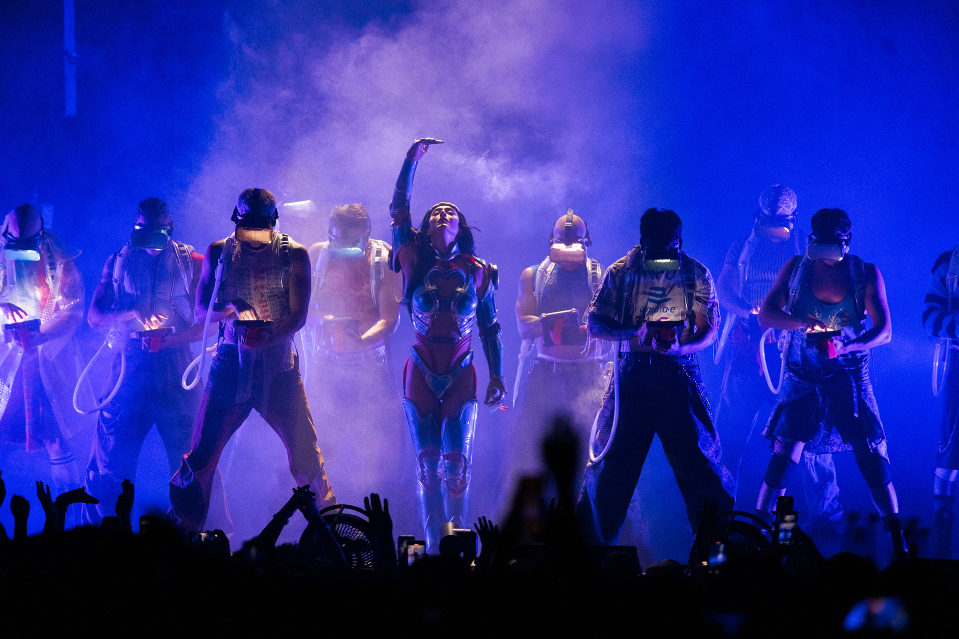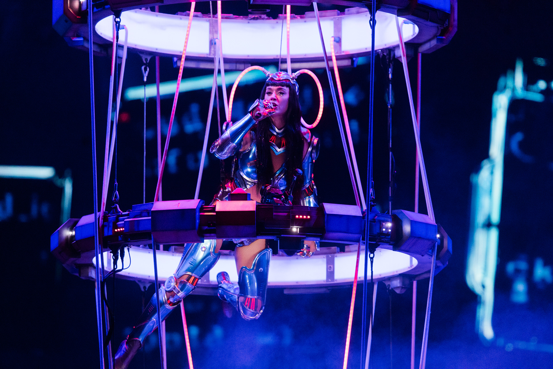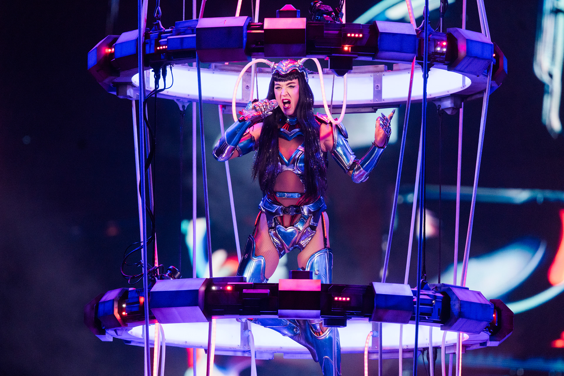 Before Perry took over, Rebecca Black opened the evening with high-energy charisma. Armed with a pair of dancers and a remix of her breakout hit “Friday,” Black energized the arena and got the crowd warmed up for what was to come .