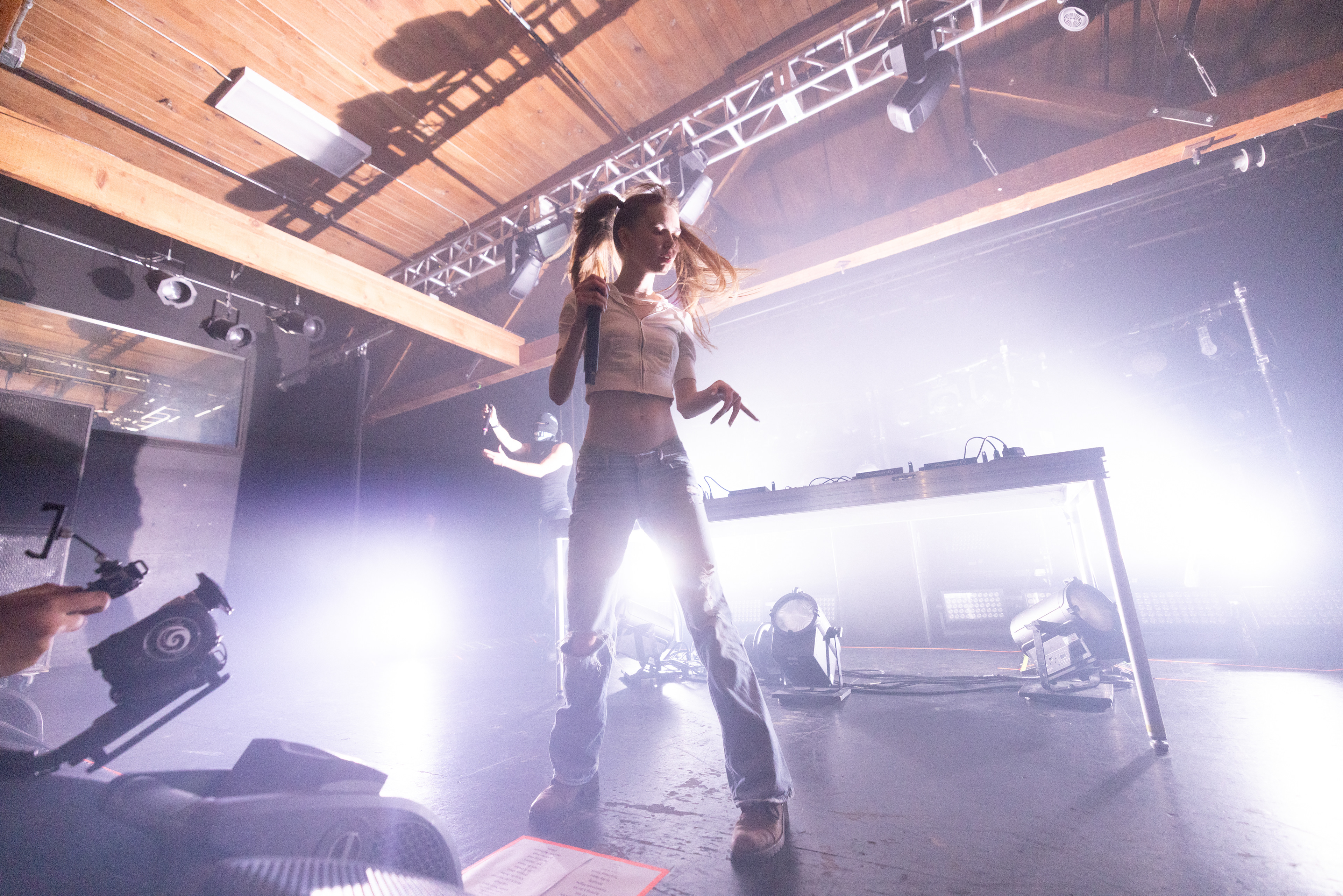 The atmosphere was electric, defined by heavy strobes and a crowd that was moving from the front rail to the back of the warehouse-style venue.